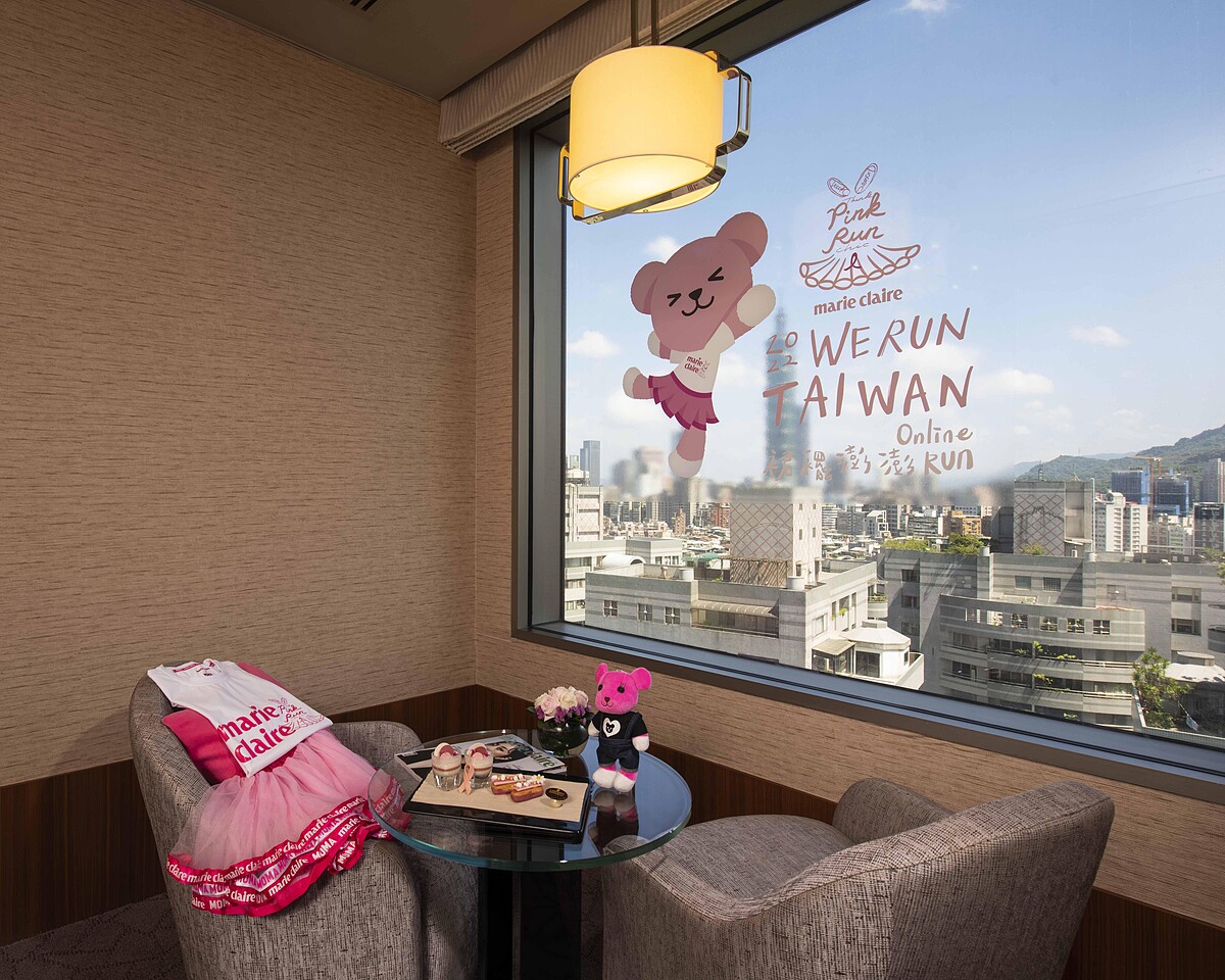 精心佈置的台北101景觀尊榮客房中,有獨家限定的手工粉紅點心、可愛的MOMO熊玩偶、粉嫩色系鮮花、美麗佳人國際中文版當月份雜誌、裙襬澎澎RUN活動上衣及澎澎裙各一件,以及兩份豐盛早餐!住客還能到飯店免費使用43樓景觀恆溫游泳池及健身房,並享免費停車資格。