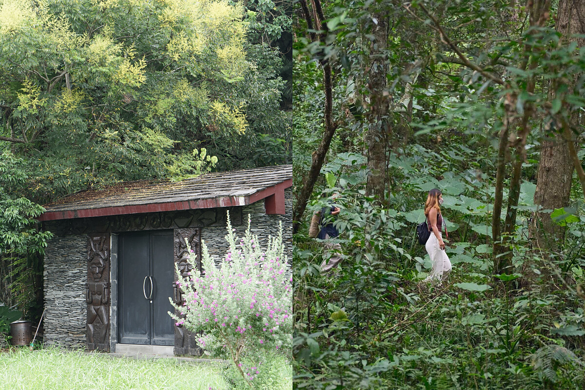 坐在敞開的後座,入場的氣勢就是不一樣。下雨了,走進去「薩巴里文化工藝室」躲雨看看木雕作品,這些木雕都有樸拙的手感氣味,排灣族的木雕裝飾都得放到頭目家裡,直到現在才能買賣,早期都不是在平民家可以看到,這工藝室特別有象徵意義。沿著村落走到土坂天主堂,這座教堂很獨特,把排灣族文化意象和西方信仰結合在一起,裡面有三位一體的雕像。離開教堂走到陳頭目的祖靈屋,因為過去祖先遷徙,他們會挑選收藏的物件,跟著自己搬遷、落地生根後寄予祖靈屋裡。