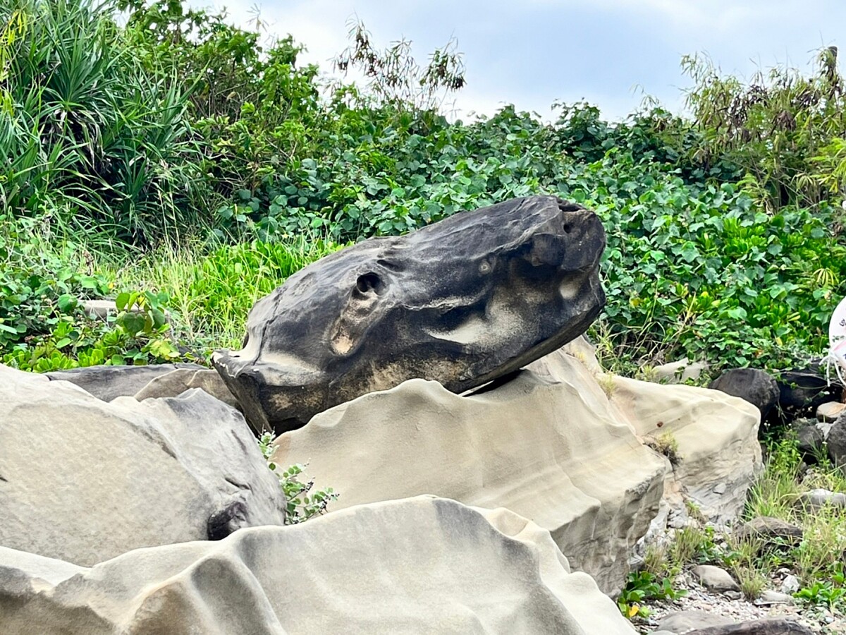 來到遼闊奔放的岩畔,海浪打啊打的,我們在這一群奇形怪狀的岩石中,找到許多動物,像是烏龜、青蛙、狗頭…,還替岩石戴上帽子,就成了探頭戴帽仁者了。這裡有豐富的濱海植物、大開眼界的豐富地形原貌,很適合師生教學、情侶相約,坐在岩石上望海,就是來台東最享受的時刻了。