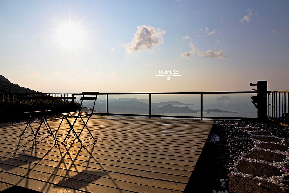 用膠囊咖啡機泡杯綿密的拿鐵、抹幾片果醬土司,帶上頂樓寬敞的露天陽台,可一覽九份遼闊的美景,清晨可望見日頭冉冉升起,夜晚則是滿天星辰點點。