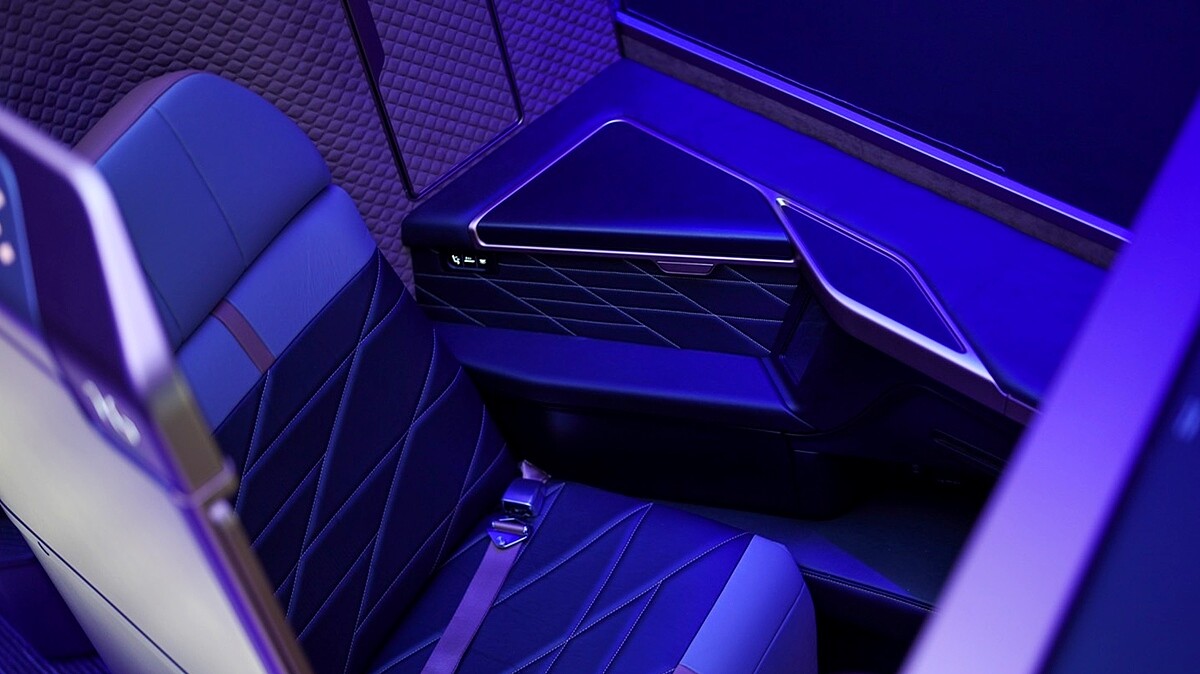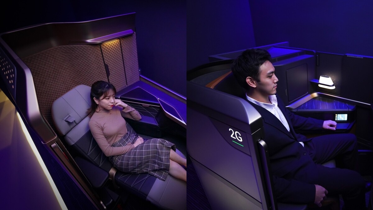 扶手優於其他艙等能「四向調整」,平躺時即能享有寬敞空間;座椅側邊有個人無線充電裝置,隨性放置手機就能快速充電。另外還配置專屬Mini Bar,更詳細的餐飲服務,請跟著《美麗佳人》密切鎖定。