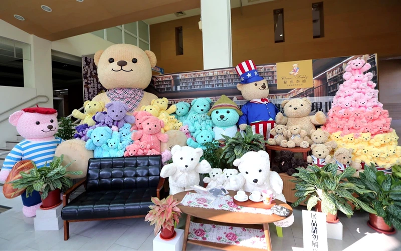 除了在戶外草坪,在新營文化中心一樓兒童閱覽室也有由200隻泰迪熊主題布偶布置的「泰迪熊愛你溫馨拍照區」,2.4公尺絨毛泰迪熊、與人等身高的熊公仔、熊爸熊媽家族與各國泰迪熊,保證讓大家拍到手軟!為期一個月的「萌熊派對」,快找時間去抱緊處理。