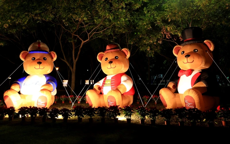 由臺南市政府觀光旅遊局、文化局、佳馳國際有限公司三方合作,在南瀛綠都心公園的廣闊草坪上,請出5隻高3米、3隻高8~10米泰迪熊坐鎮,包含精典泰迪熊、英國衛兵熊、國王泰迪熊、英國熊、魔術師熊、棒球熊、原民熊、飛行員熊等造型,每晚更會點燈畫面超暖心,呆萌造型逼人一一打卡收集!