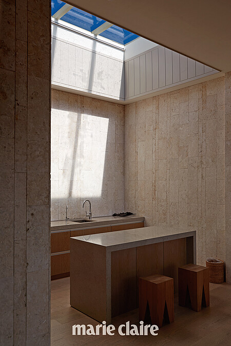 位於主建築空間三樓,門面與一般房型並無不同,開門後卻別有洞天,35坪的空間配置附有引光入室的天井設計、簡易的中島廚房、雙衛浴、客廳以及雙人房,窗外則是一片絕無僅有的大尖山與海景,視野相當開闊,能在寬闊的露台躺椅上享受日落照映海面的波光粼粼,也能在夜幕低垂時觀星賞月。