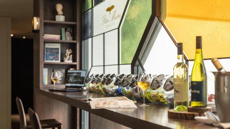 酒店樓層更與國際七大酒莊聯名,日本天皇賜名的日本君萬代、連年獲世界氣泡酒冠軍的西班牙Gramona、德國最大酒莊、日產量百萬瓶的Peter Mertes、德國母河摩澤爾河畔的雷司令酒莊S. A. Prum、義大利酒王區中獲獎無數的Manfredi、智利巨賈的精心傑作Vina Garcés Silva、天才釀酒師Steve Matthiasson,以及超級葡萄園Meadowbrook Farm通力創造的美國Kanpai Wine,都是慕舍酒店的合作夥伴,入住便能於各樓層Super Bar品酩世界好酒,盡享香醇甘冽、微醺酩酊的快意。