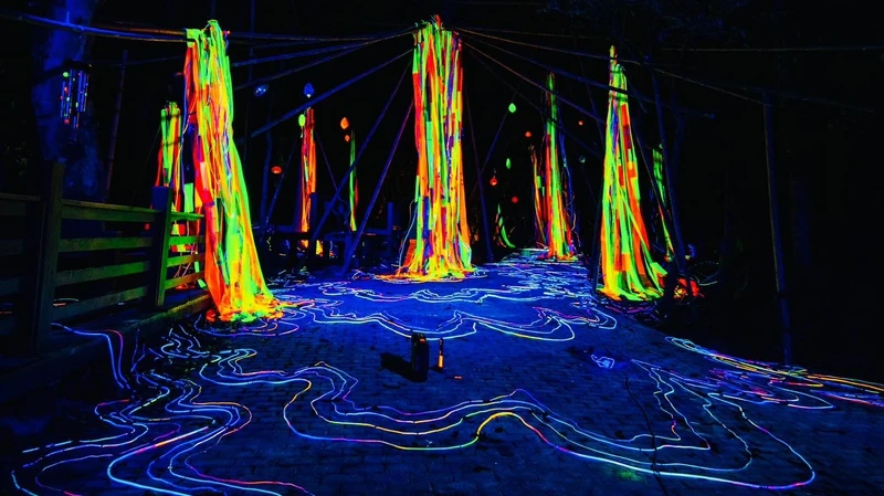 與往年一樣,作品由藝術家、動畫師、社區居民、在地學校共同創作,3件場外、12件場內藝術品有舞台裝置藝術、把光景作品結合擬聲音效,呈現出獨特的環境劇場氛圍。場域擴大到以往未曾達到的範圍、行徑兩座吊橋,而作品量體也擴大,令與會民眾能依循著光影探索虎形山公園神秘面貌,並在圍繞在在地議題的故事中,藉由沉浸式體驗踏上前所未有的心靈之旅。