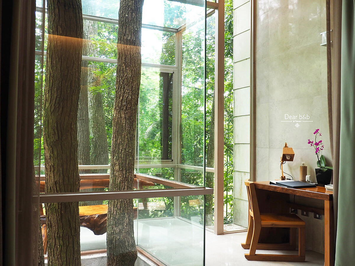 「樹」以台語發音,即是「樹也」(choo art),樹也團隊以生態永續為理念,進行森林復育後打造出綠建築Villa,盼望能與自然共生。房間格局皆繞樹而建,並使用大量玻璃與天窗引入戶外光景,在房內就能邊泡湯邊欣賞滿窗綠意!