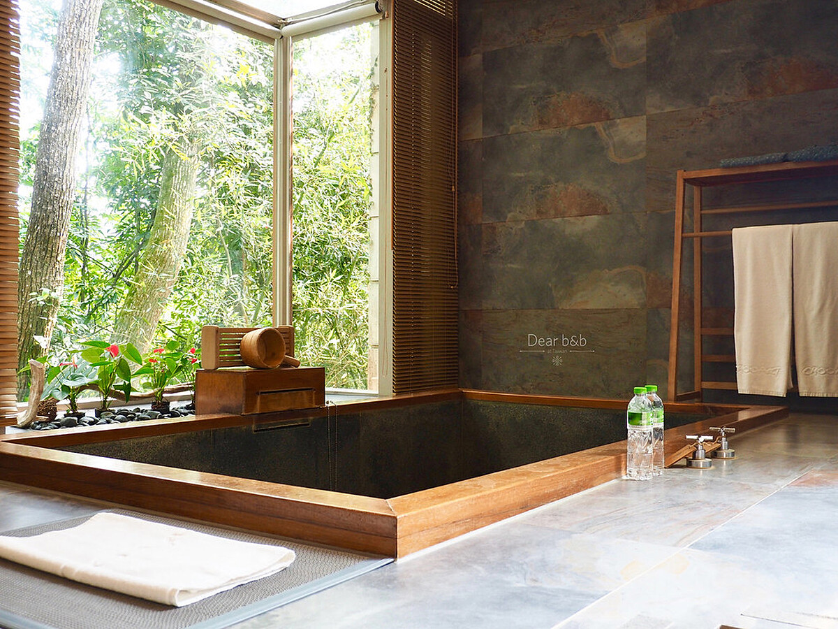 盡享綠意的寬敞溫泉湯池