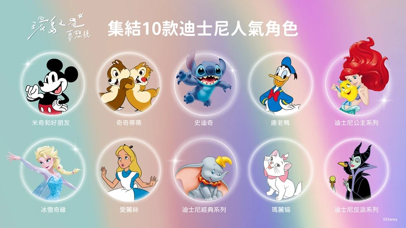 一走進車廂,更會驚奇連連連!各主題車廂都充斥著10款人氣角色,像是商務車廂就有8款主題,包含冰雪奇緣、米奇與好朋友迪士尼公主、迪士尼經典、迪士尼反派、唐老鴨、愛麗絲、瑪莉貓等,逼人一一去收集、美照拍不完。