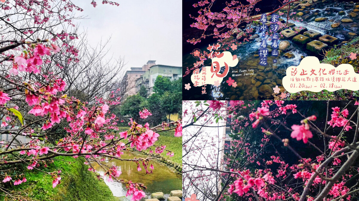 在大台北地區率先綻放枝頭的「汐止文化櫻花季」,於1/20~2/18登場!上百株的山櫻花在此時會沿著河畔呈現出整片桃紅色花海,更在溪畔兩側步道設置照明燈及拍照點,不只白天超好拍,每晚5點半至11點還會有「溪澗夜櫻」,準時開啟櫻花步道照明燈、櫻花造型燈條、溪畔球燈,有著與白天截然不同的迷人面貌。賞櫻完推薦順遊大尖山風景區、金龍湖、翠湖、新山夢湖、拱北殿,可以列入走春行程中!