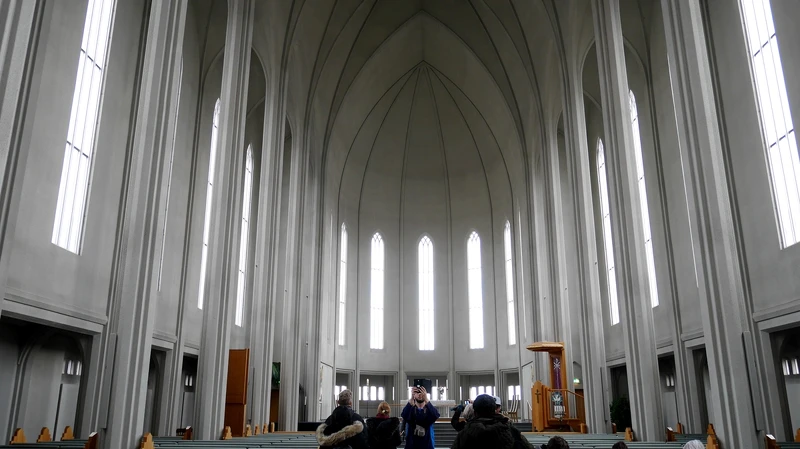 相較於教堂戲劇性的宏偉外觀,內部則簡單而樸素,其中最有特色的是一座擁有5,275根風管、像武器般的巨大管風琴。夏季時,有機會在教堂裡欣賞到音樂會。遊客還可付費搭乘電梯至教堂頂端的高塔,這裡有眺望全市景觀的極佳視野。矗立在教堂前的雕像為Leifur Eiríksson,據傳他是10世紀維京時代,第一位發現北美洲的探險家,而這尊雕像是美國送給冰島國會(Alþing),作為這個世界最古老國會1000週年紀念的禮物。