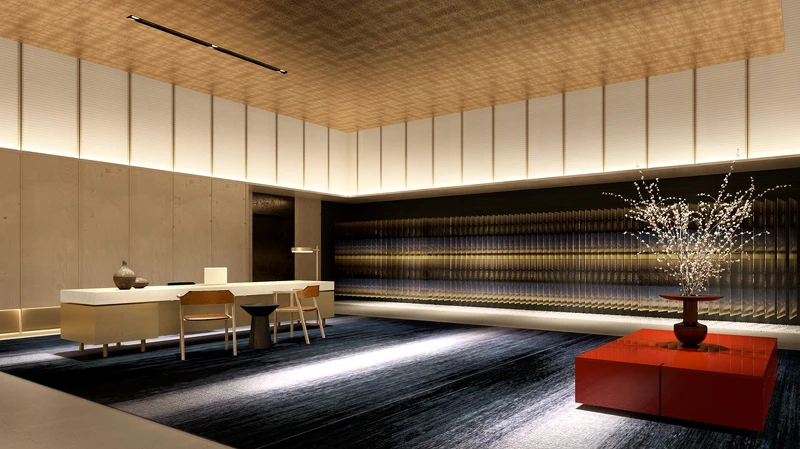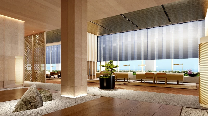 「福岡麗思卡爾頓酒店」將進駐大樓1樓、2樓及19~24層樓,由澳洲墨爾本設計公司Layan Architects + Designers操刀,規劃147間客房、20間套房、大廳、水療中心等各場域空間。在燈光、地板等裝飾細節方面,巧妙加入具當傳統的「博多織」,如大廳的立體壁畫由數千根染色編織而成,又或是在地毯、燈具都能看到此傳統工藝的展現。