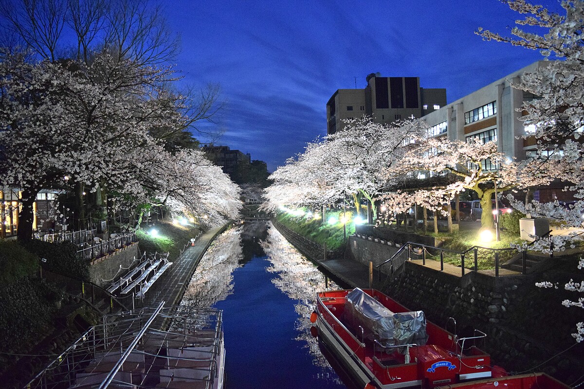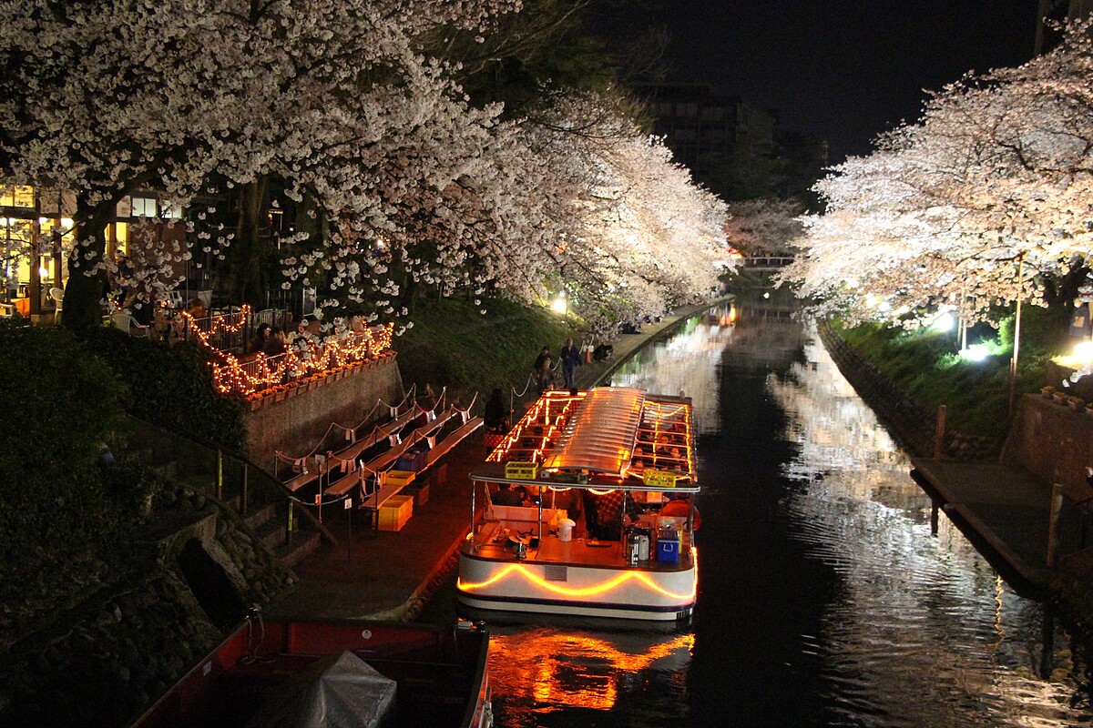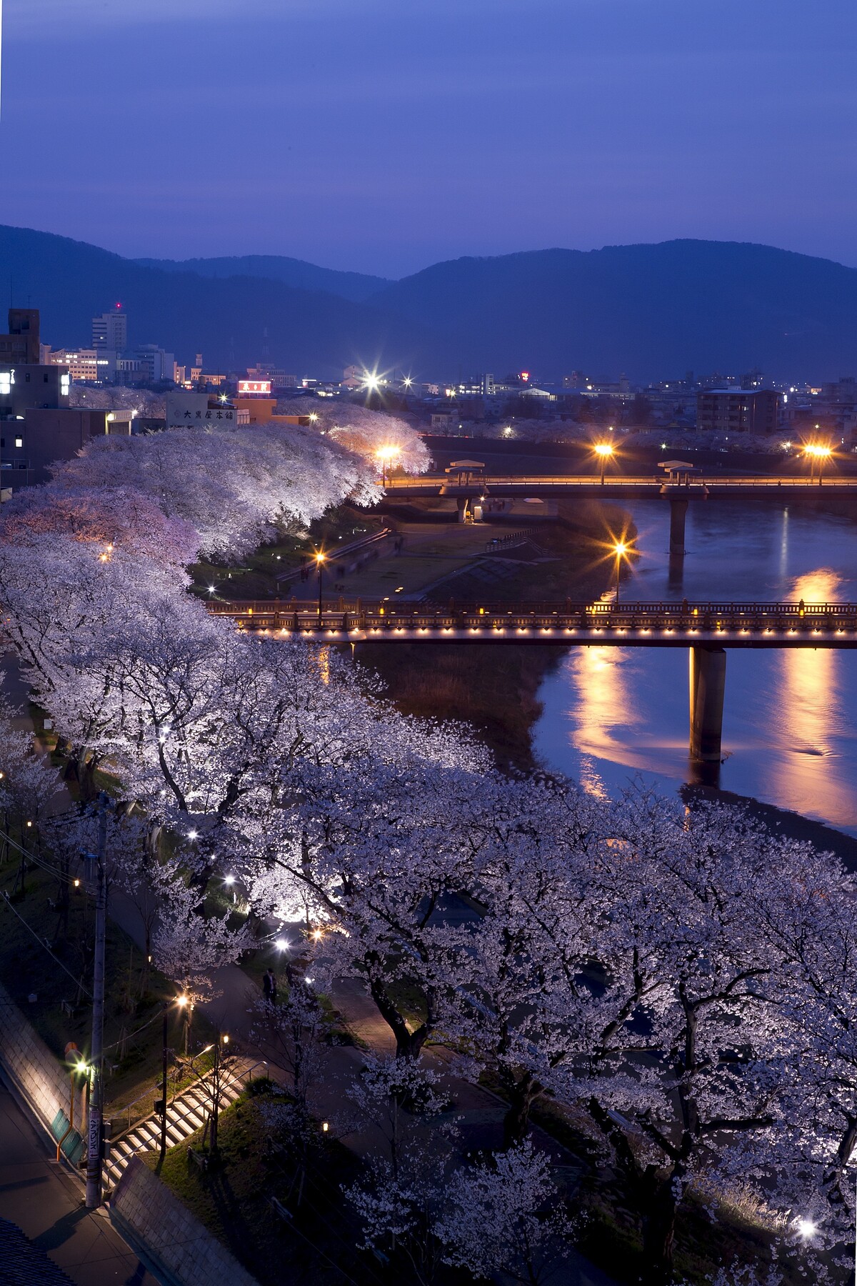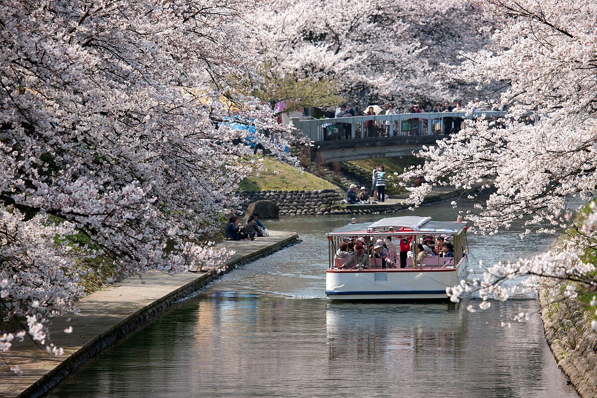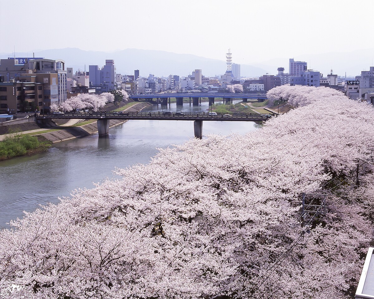 福井縣的足羽川沿岸有一條綿延2.2公里約600棵櫻花樹的櫻花步道,為「日本賞櫻名勝百選」之一。特別是在花月橋附近的堤防兩旁的染井吉野櫻,在盛開之時形成了天然的櫻花隧道,讓旅客能漫步在粉嫩且壯麗的隧道,享受無死角的美景。