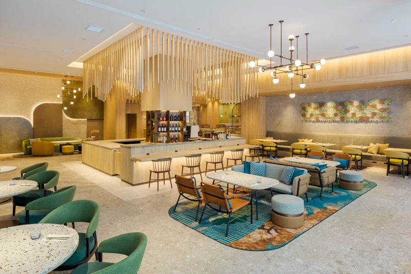Hilton Garden Inn 京都四条烏丸的裝潢以木製為基調,融合日式的傳統要素,加上不失時尚的現代設計,帶來舒適的視覺效果及令人自在放鬆的氛圍。