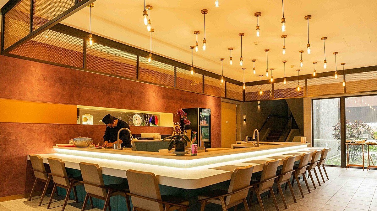 有著鄰近漁港的地利之便,園區內的「舞饌日式料理」、擁有18年深厚資歷的日料主廚吳侑霖,每天都親身前往大溪漁港選購新鮮魚獲,並在全新的板前座位席前推出無菜單料理,在低調用餐環境中,品嚐約15道結合創意巧思的當季新鮮舌尖盛宴,為旅程增添一道道美味記憶。需7天前預訂,每位1980元+10%起。