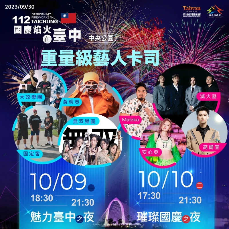 開始規劃雙十連假出遊計畫!2023年國慶焰火宣布將在台中施放,這個睽違9年重返的消息一出,立刻引發不少民眾討論,令人相當期待。當晚17:30開始晚會表演,20:00則施放一年一度的絢爛煙火。