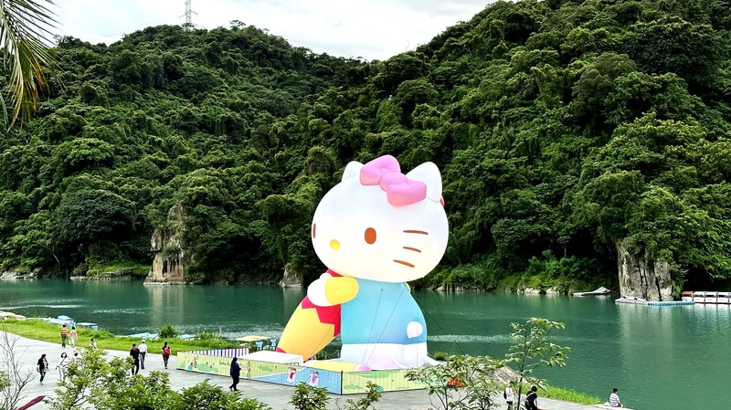 13米巨萌Hello Kitty降落碧潭!5位三麗鷗明星化身療癒地景,拿筆寫字畫畫有夠Q