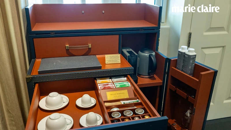 在大廳後方,以樓梯處巧妙隔開房客專屬區域,全套房設計可分為9種房型,包含12間「名人公寓 Personality Suite」,有卓別林、伊莉莎白泰勒、英國諾爾寇威爾爵士Noel Coward,房間內甚至藏著他們的傳奇事蹟。此次入住最令我驚豔的,便是在2019年翻新時全面採用的「客房平板」,躺在床上便能輕易操控客廳、臥室、浴室的明暗、溫度、窗簾開關,以及開關電視享用娛樂系統,Youtube、Netflix到鏡射投影功能都一應俱全。而當然可以藉此點餐、預約館內餐廳及詢問管家大小需求。