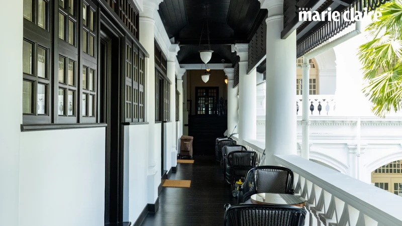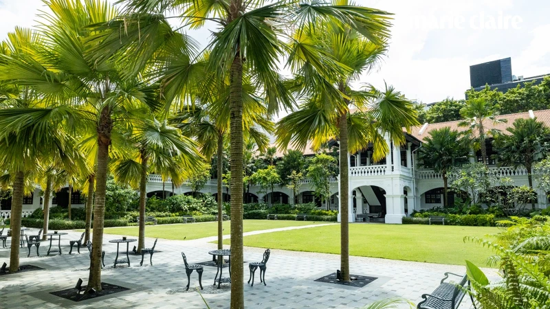 新加坡萊佛士酒店佔地約5個半足球場空間,是當地最早提供電報、馬車服務的酒店,最早只設置10間客房,至今已擴張至115間套房。以白色為建築主色系,穿插多處綠意花園帶出濃厚度假氣氛。陽台長廊、拋光柚木地板帶出殖民時期建築風格;挑高大廳高掛的900公斤重水晶燈,則讓旅客一走進便有強烈的奢華視覺衝擊,環境更陳列著悠久歷史的報時鐘、黑膠唱片機及音樂盒,隨處都值得留心探索。