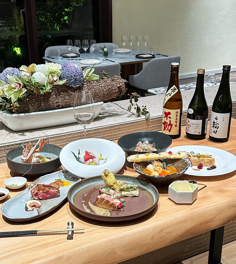 而「岩波庭無菜單料理」擁有近30年日本料理經驗、榮獲台灣百大名廚殊榮的黃欽洲(阿洲師)領軍,並延攬健康名廚陳之穎擔任法式料理顧問。料理以日式揉合法式的創新手法,呈現全新的日法無菜單料理。