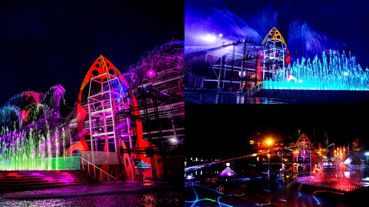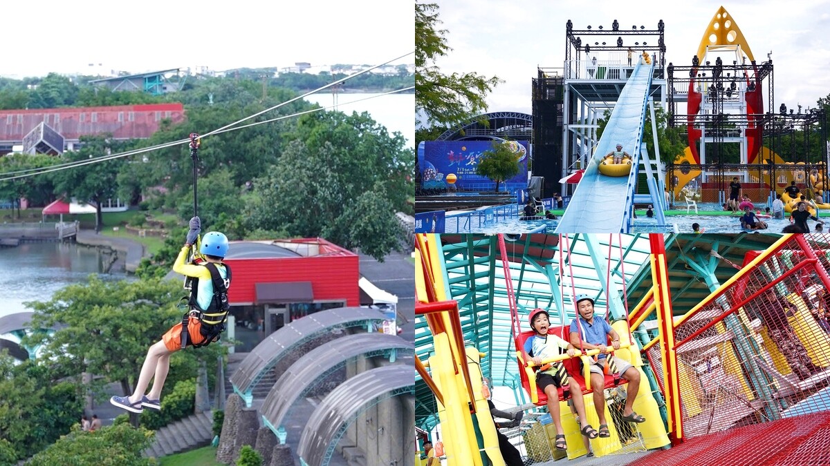 在戲水池中央、以火箭塔為外型打造的「星際太空總部」,是一座矗高12公尺的吸睛地標,在這裡可以體驗高速滑水快感,也能同時把親水公園景色盡收眼底。其他還有「魔幻雨林」、「重力造浪池」、「海神雷達站」、「星空水戰場」等科幻風格戲水設施,絕對讓男女老少玩到失心瘋。