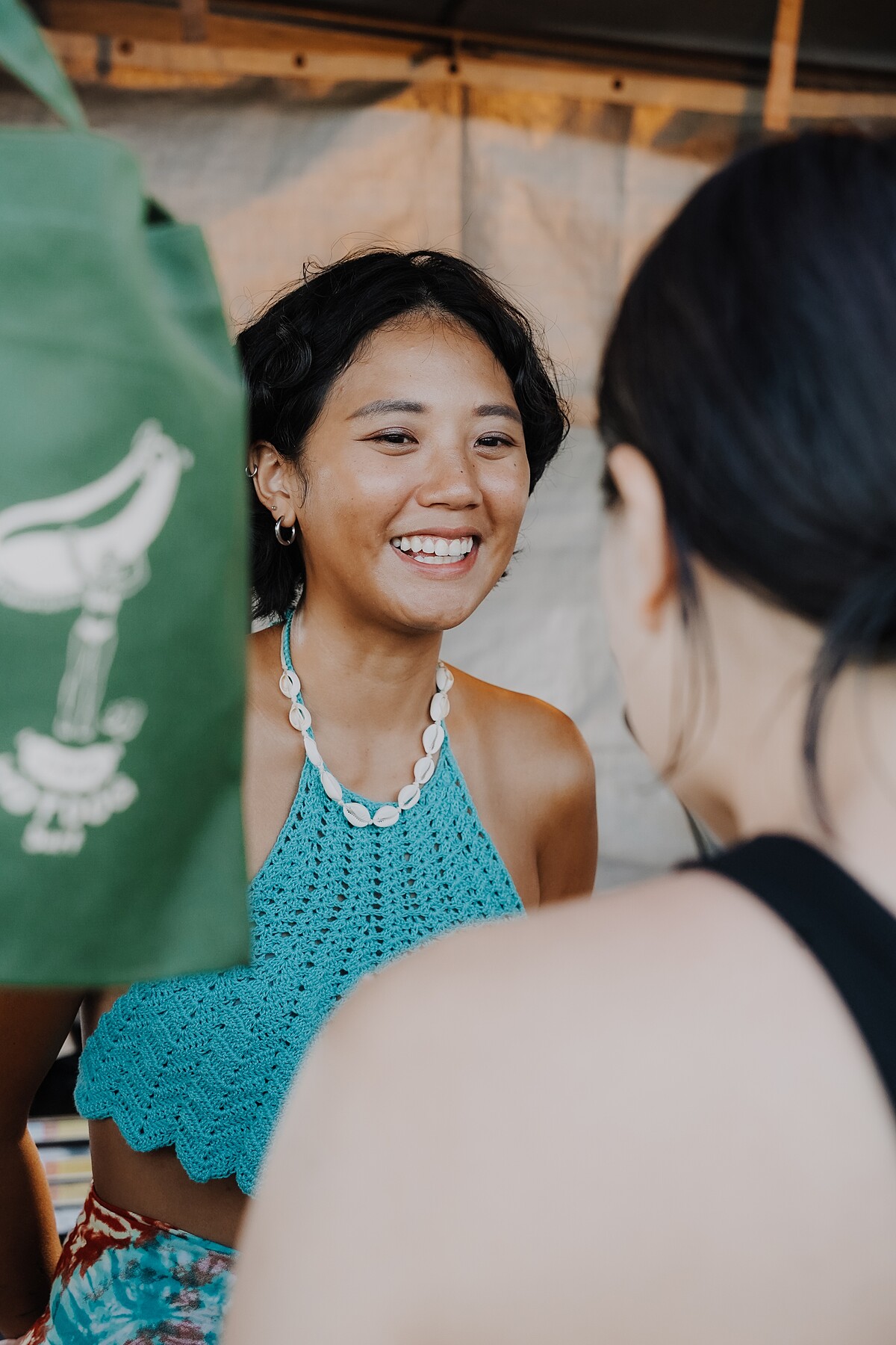 不只搜羅好吃、好喝的,潮汐市集還有許多好看、刺激靈感的設計品牌攤位。來自頭城的設計品牌「MuiiSwim」,以為亞洲女性打造適合海上運動的泳衣為品牌核心,讓逐浪女孩們能自在且安心地享受浪花拍打的力道;專注手染衣創作的品牌「灘灘」,創作靈感則來自與海有關的一切,以冷染的方式於衣料上渲染浪花翻騰的模樣,展現海色變換的瞬間。
