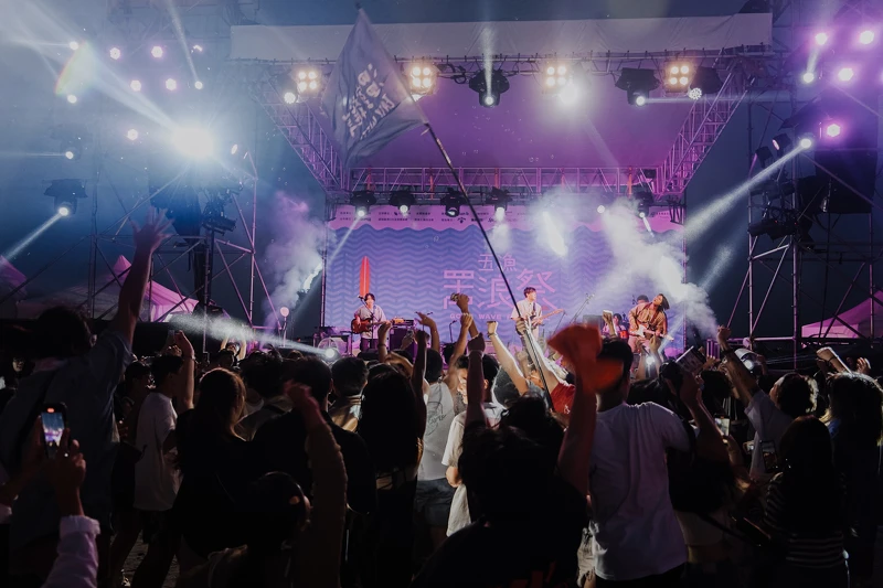 五漁罟浪祭音樂現場,人們可以或坐或躺,可以瘋狂熱舞也可以閉眼輕搖——如浪般自在,如每道浪花般有屬於自己的美麗姿態。「溫室雜草」時而以迷幻朦朧的鼓點,時而以激烈搖滾的吉他聲,在現場演繹一場如海霧籠罩全場的音樂迷走,台下觀眾舉著大旗在場中央畫出無形的圓,隨著節奏起伏往圓的中心衝撞、慢搖,以用身體記憶音樂帶來的觸動。