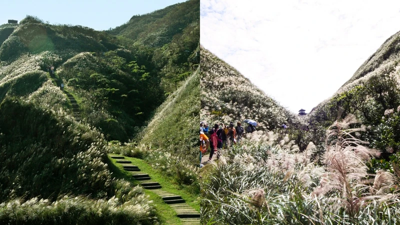 說到北部芒草景點,必須要一賞陽明山國家公園!有許多好走、適合全家出遊路線,像是七星山主東峰步道、紗帽山步道、擎天崗環形步道等等,步道旁的芒草是具有韌性的「白背芒」,可以生長在其他植物不能忍受的地質、地形條件,也因為硫磺影響,色澤有別於一般的白銀色,呈現更迷人的淡紅色調,如此夢幻怎麼能錯過?