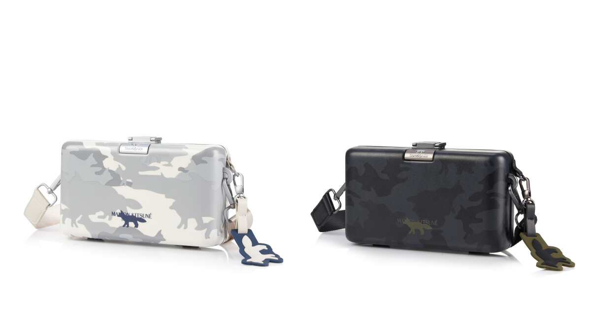這次的聯名系列共有6款,包括旅行箱以及日常包款,以黑色和白色作為基底,經典的Maison Kitsuné迷彩小狐狸躍然其上,像是25吋四輪旅行箱除了外殼,包裝袋亦印上了小狐狸印花,輕旅行則可以選擇16吋四輪行李箱,而包款類則有捲蓋後背包、後背包、迷你斜背包和斜肩包4款。