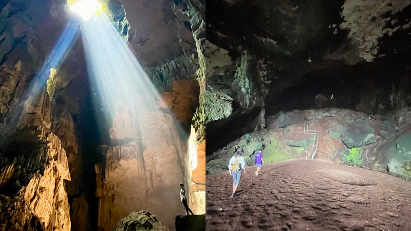 在行經一片宛如火星地質的路途後,寬廣的岩洞撒下些陽光,大洞穴看似人間仙境,雖然腳下因鳥糞變得相當溼滑,相當容易因一時不慎跌倒,但仍美不勝收。許多較年長的旅客在走完約20分鐘陡峭的木棧樓梯後,就會止步於此,因為月亮洞穴沒有照明設備,需使用手電筒或是頭燈才有辦法繼續前進,難以想像洞穴裡樹立著許多大石頭的場景,竟是數百萬年前海底美景。