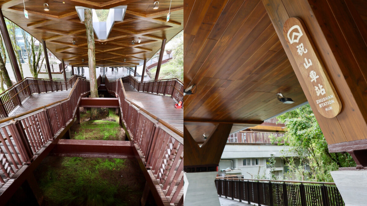 放眼祝山車站的大廳和天花板,能看見許多來自鄒族的圖騰,而車站不照常規的α形狀,則是為了順應地形及山巒的原始線條。此外,祝山車站的月台採筏式基礎,能夠有效回收雨水,改善山區缺水問題;回植車站原植物,減少直接光照影響當地生態,這次修建,除了在觀光產業升級之外,更重要的是打造人文和自然共存的生態永續空間。