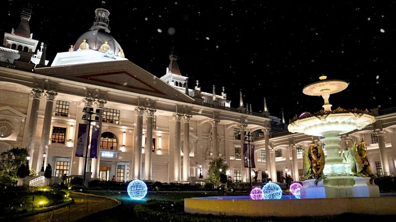 除了白天有歐式城堡景致洋溢著異國風情,佐登妮絲城堡在「妮絲公主花園」布置滿滿的藍白燈飾,待夜幕低垂時便呈現出璀燦星海畫面,有如「台版東京汐留」,令人目眩神迷!這檔聖誕節活動一路舉辦88天,還會有雪花紛飛、粉色及白色燈球點綴,演繹出專屬冬季的浪漫畫面。