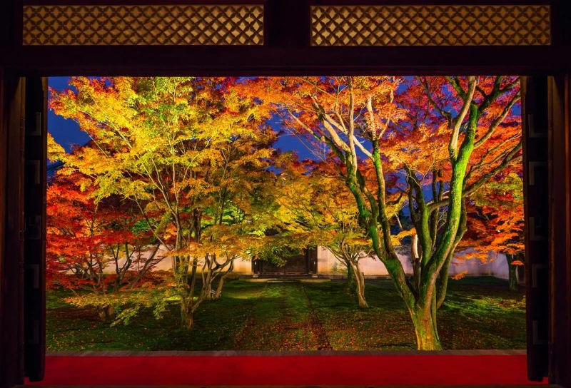 提到京都的紅葉聖地,不可錯過首屈一指的「永觀堂」。永觀堂起初寺廟作為真言密教的道場,被稱為「禪林寺」,自古至今此地更是眾所皆知的賞紅葉聖地,11月中起為最佳賞楓時期,約3000株楓葉點綴池泉回遊式庭園,壯觀的楓紅景致,更襯托了周圍的多寶塔及御影堂。11月起至12月初,更在限定期間內開放夜間參觀,並實施夜間點燈,讓楓紅景致更增一份夢幻氛圍。