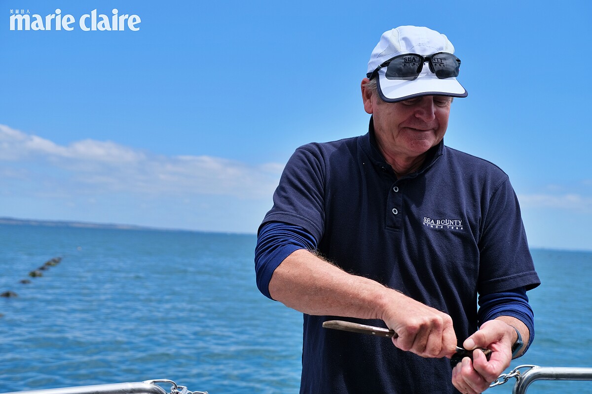 於是,我們登上一艘以船長 Lance Wiffen 媽媽美麗的名字 Valerie 作為命名,且經過塔斯馬尼亞工匠精心修復、具有40年歷史的侯恩松木貽貝拖網漁船。在擁有37年海農資歷的淡菜大師 Lance與太太Lizzy Franklin 共同經營。