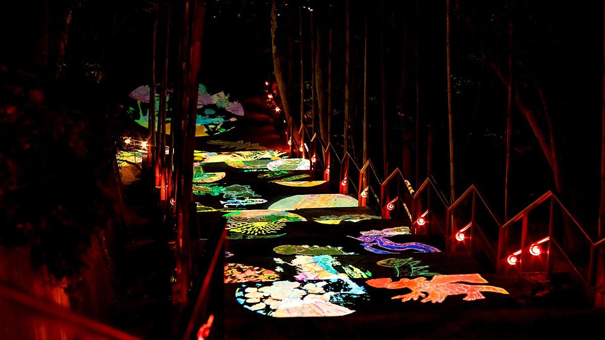同樣地,2024龍崎光節空山祭持續創造當地居民與遊客互動交流的可能,今年更更強化互動裝置、搭配聲音及文字元素,期望能藉由光與自然的疊加,創造身歷其境感受。像是讓參觀者更加身歷其境,深刻感受光與自然所帶來的感動。園區入口的《光夢龍》,巨大體積便能帶來視覺震撼;韓國藝術家李恩淑的《龍火瀑布》是結合透明聚酯纖維、螢光線、光的大型創作,傳遞著從溶岩瀑布從山谷傾瀉而下的體驗。
