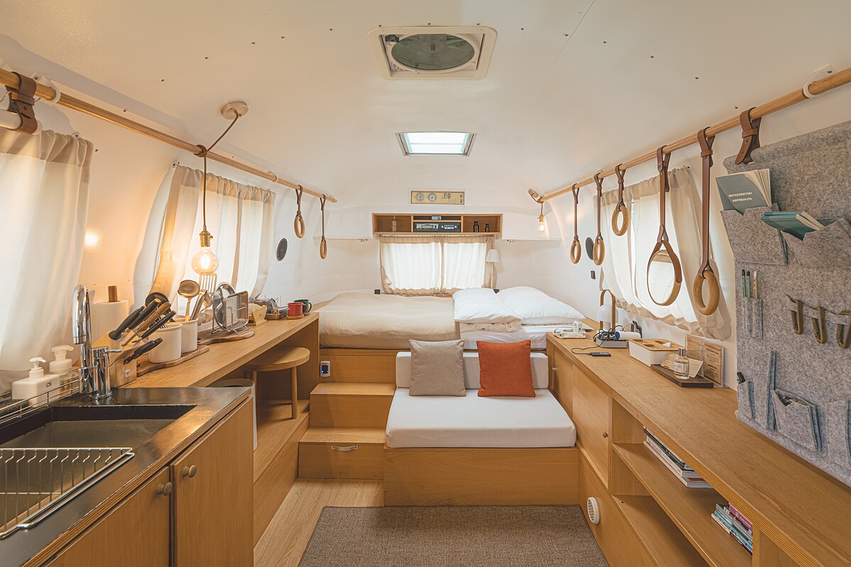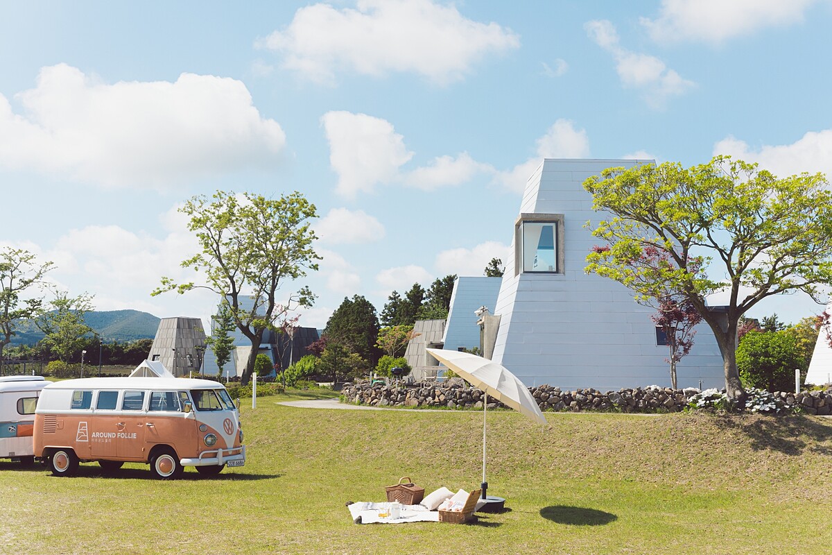 AroundFollie是濟州島上獨特的住宿勝地,吸引各類遊客。它突破了傳統民宿和露營地的界限,包括7間山形屋、數輛Airstream露營車及野營小屋。