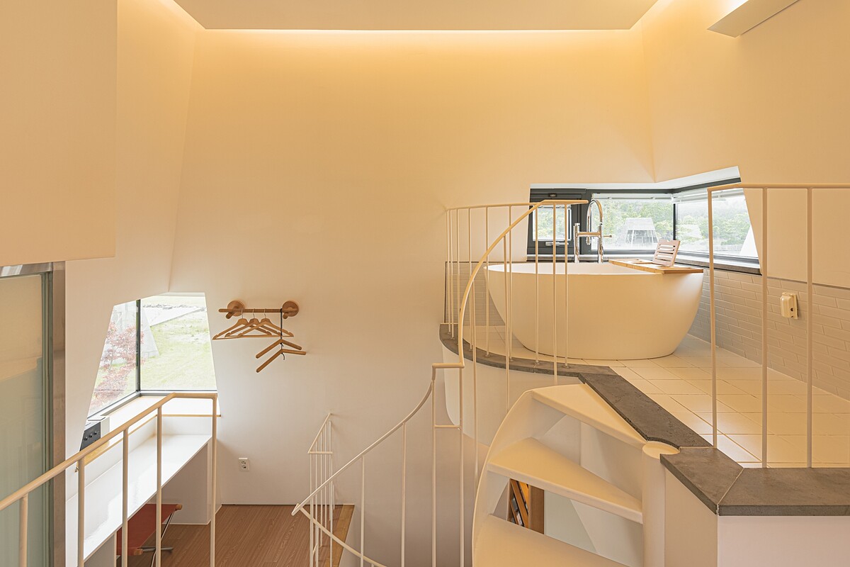 Around Follie與建築師事務所Z_Lab攜手創造了新型態的戶外野宿小屋(Cabin),來到這裡的人們既可以悠然享受山水,又不需要犧牲舒適。小屋以自然中的「微型家園,精簡生活」為主題,希望人們聚焦於保留生活中真正的必要元素。空間雖小,客廳、臥室、浴室和廚房一樣也沒少,經過設計師的巧手後融為一體,流暢的動線中仍然保有Around Follie一向的感性,也就是盡量減低室內外的隔離感。寬敞的露台最適合一夥人同樂,擺幾張摺疊桌椅、拿出幾瓶清涼的啤酒,呼吸濟州島山裡含有快樂芬多精的空氣。更貼心的是,如果有提前預訂,業者也會按照人數準備烤肉食材,省去了在國外備餐時的煩惱。