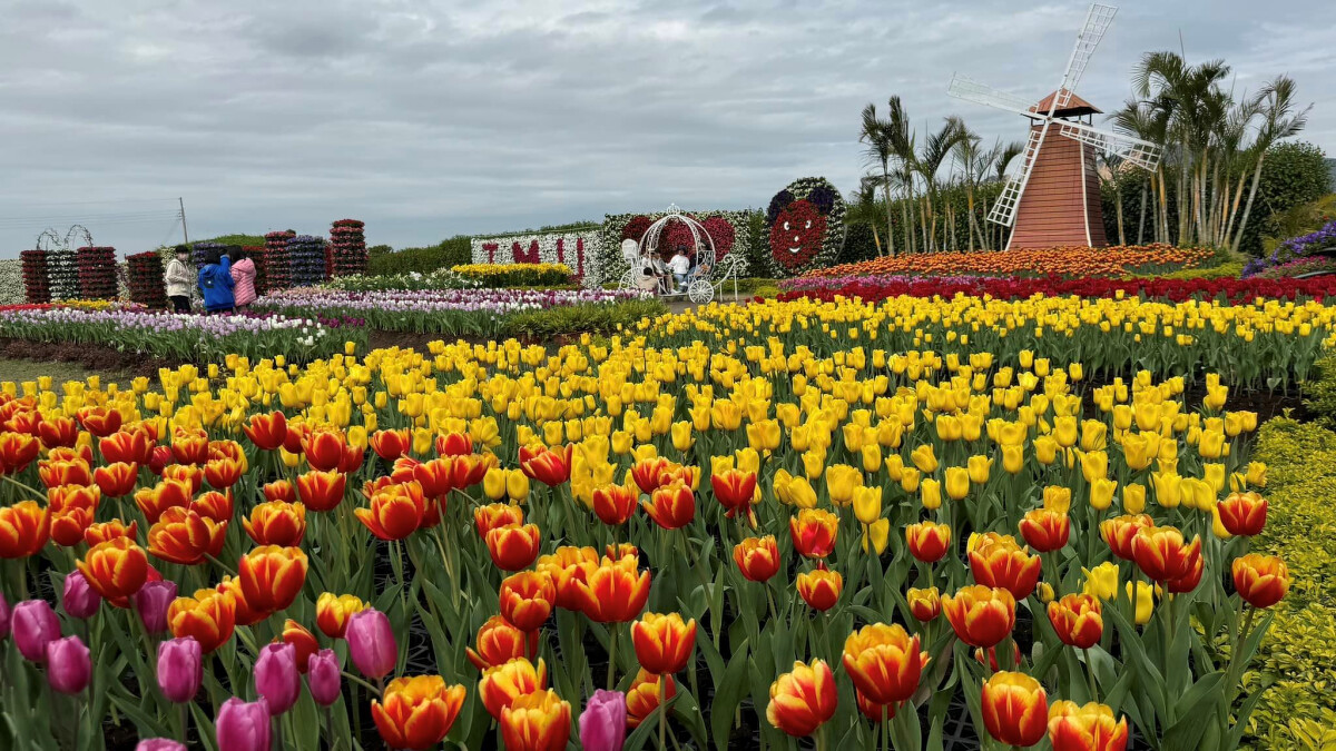 中社觀光花市占地達6公頃,一年中的不同季節都有各種花卉綻放!1~3月則是鬱金香的主場,園區中除了種植大量花草,還有許多能夠拍出絕美照片的佈景,像是歐式風車、豎琴、白色大提琴、彩虹屋等等,是家庭出遊或情侶都很適合來的夢幻、繽紛景點。花市入園需要門票,因此建議可以預約烤肉,就能免費進到花海區參觀。