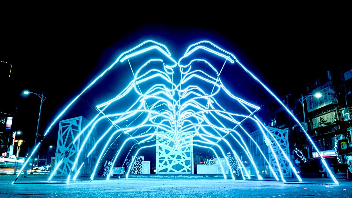 2024新莊中港大排光雕展最大亮點,是在中港廣場入口處,設置一個高達5公尺的「愛心造型光廊」,這個傳遞出「守護愛情」意象的裝置藝術,由多雙手比愛心而成,搭配其湛藍色調,入夜後相當搶眼,完全是不能錯過的拍照打卡點。還有花海、熱氣球以及如愛之船等造景等著你。