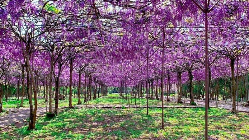 一號屯山園區占地1500坪、種植400株日本紫藤花;二號水源園區占地8000坪、種植1100株日本紫藤花,在春天盛放的浪漫畫面,即便短暫卻仍能在旅客心中掀起廣大漣漪。