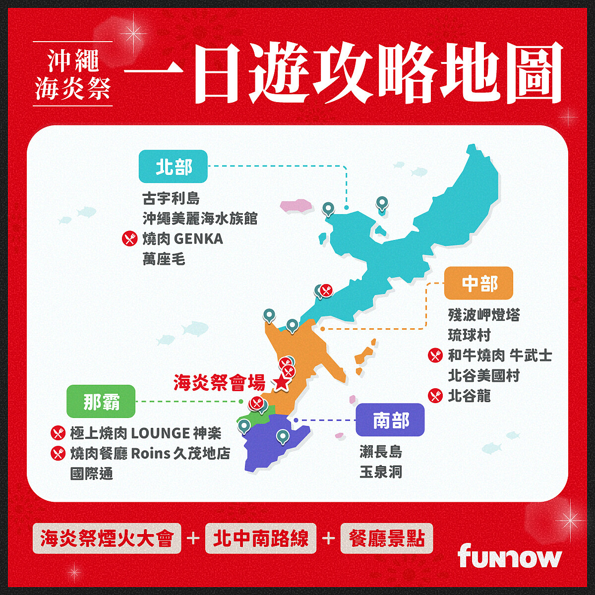 至於餐廳方面,如果擔心日文不好,不知道怎麼訂餐廳,可以參考「FunNow」提供的中文介面訂位,包括位於恩納村的「燒肉 GENKA」、CP值超高的和牛燒「北谷龍」、坐落美國村的「和牛燒肉 牛武士」、燒肉餐廳「Roins」、「極上燒肉 LOUNGE 神樂」等都是值得推薦造訪的餐廳。除此之外,在FunNow預訂沖繩指定人氣餐廳,結帳使用VISA御璽卡輸入「VSOR2024」最高享七折,真的是心動不如馬上行動!