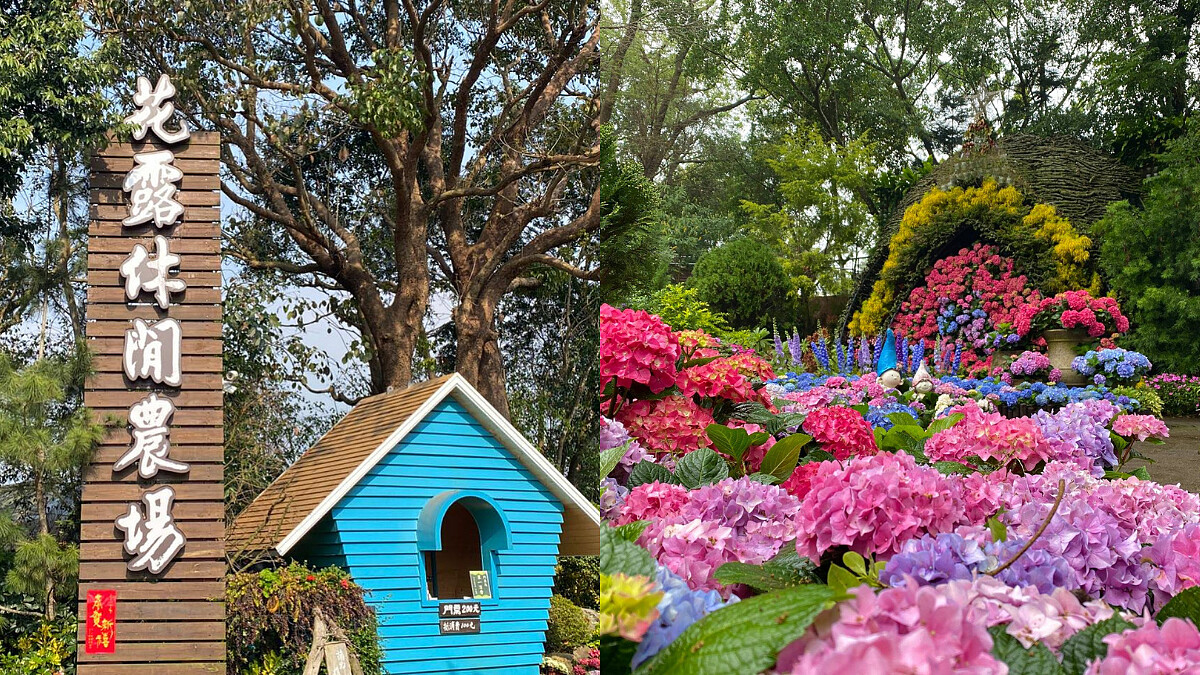 占地3.2公頃的花露農場在地營業超過30年,園內擁有數萬朵繡球花,分為四大區域展出,分別是「波波球花園&火車繡路線」、「繡球花主區」、「室內蘭花館」和「香草能量花園」,除了有大片花海能看,園內也有許多建築造景,還有全台唯一的繡球花小火車,不少家長會帶著小朋友來這裡搭小火車、吃霜淇淋,享受被大自然包圍的午後時光。