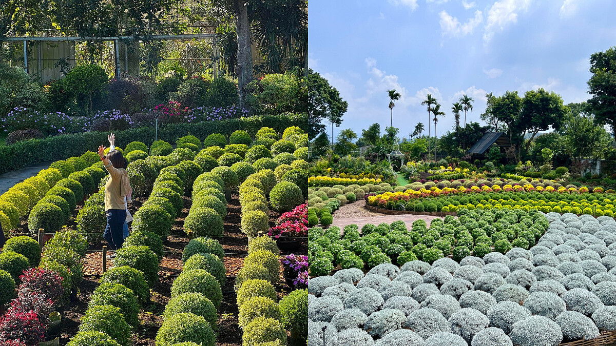 除了繡球花,園內也有許多不同花草,例如由各種植物修剪而成的波波球花園,是IG上的打卡熱點,因為品種多,能見到各種顏色的波波球,一大片圓形小球看上去超療癒,任何角度拍都好出片!