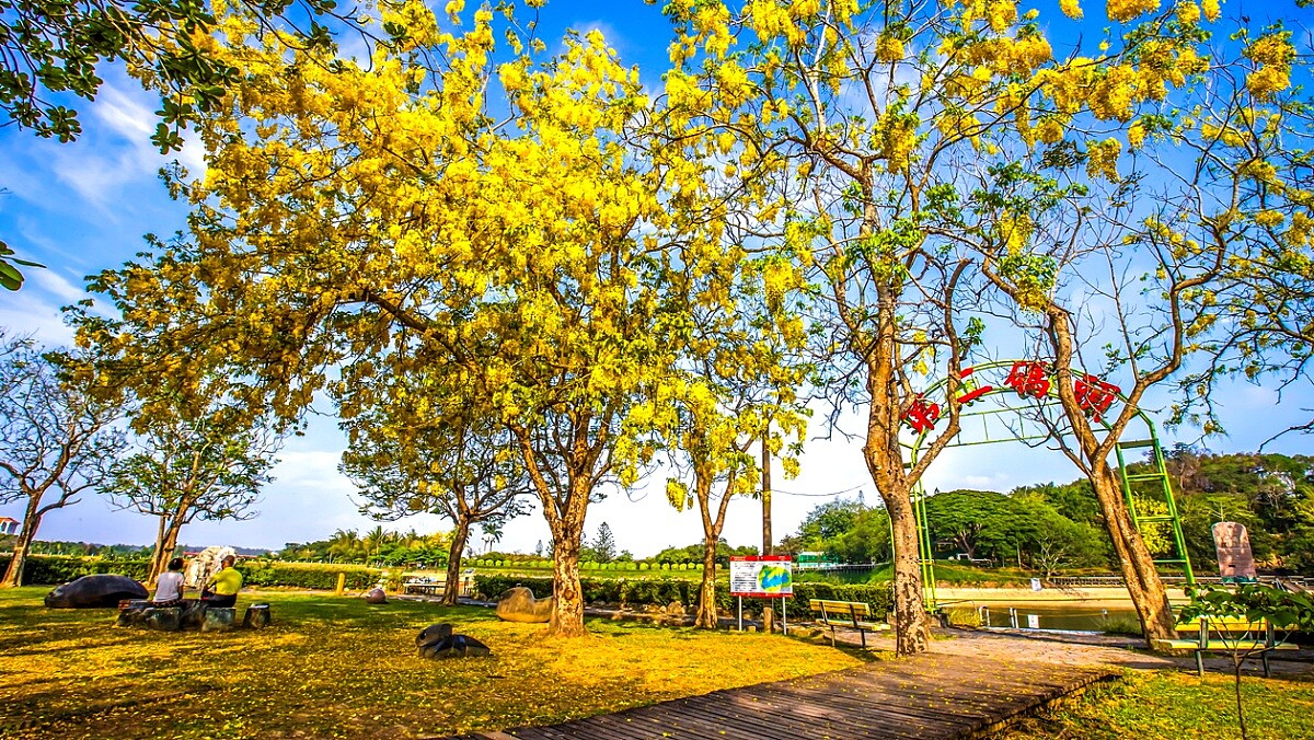 每年5、6月就是金黃色「阿勃勒」的開花季節!台南最具代表性的賞花勝地,當屬新化區的虎頭埤風景區。2024台南虎頭埤阿勃勒花季登場,台南各處也都下起陣陣「黃金雨」,隨風飄逸的畫面宛如純愛電影場景,快把握時間去浪漫一波。