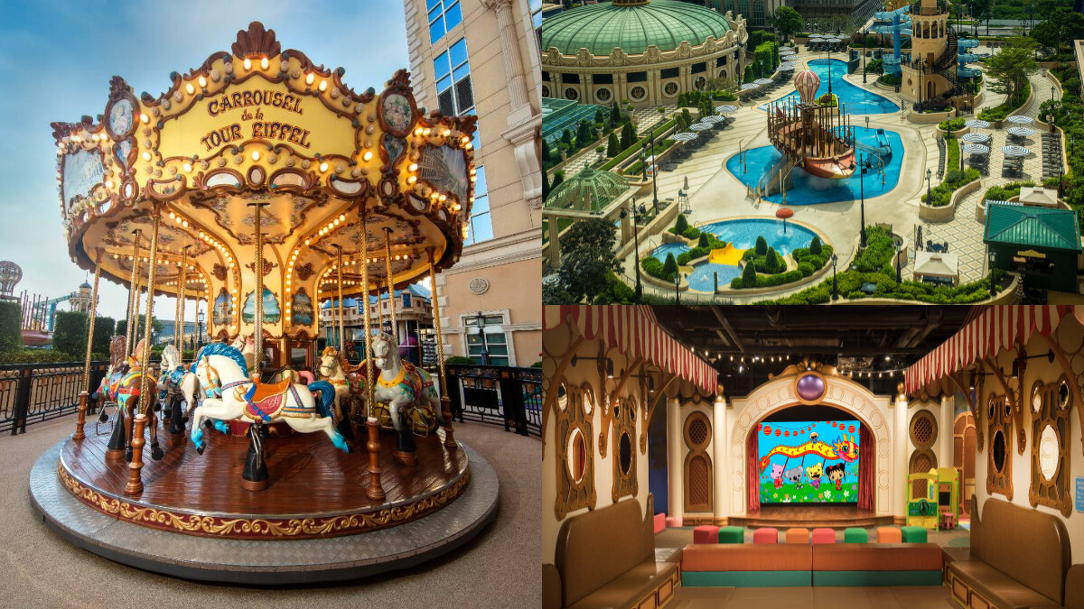 酷暑想找個有冷氣的室內放電這裡請!Q立方王國位於澳門巴黎人酒店的6樓,以奢華夢幻風格為主題,將近20000呎的遊樂空間都非常寬敞,讓人彷彿來到童話中的奇遇國度。場內設施包括球池、攀登太空艙、溜滑梯還有水上樂園,必玩的夢幻旋轉木馬和12米高的滑水道,更是讓一家大小都能盡情享受。