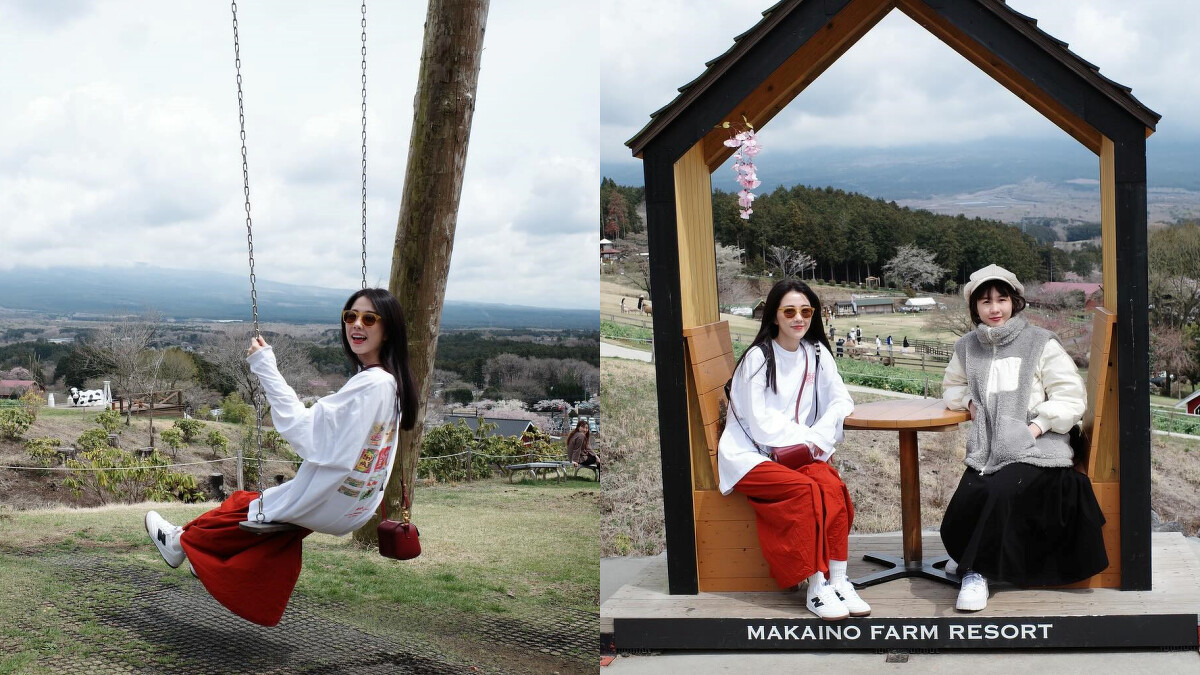 位於靜岡縣、以富士山為背景的馬飼野牧場,是結合觀景、動物互動、親子遊戲、手工體驗、餐廳等休閒活動的大型綜合牧場。其中更以富士山盪鞦韆最為出名,是來這裡的必打卡點,雖然邵雨薇到馬飼野牧場時,剛好遇到富士山躲起來,沒有拍出鞦韆旁的富士山,但依舊不影響與妹妹一起出遊的好心情。
