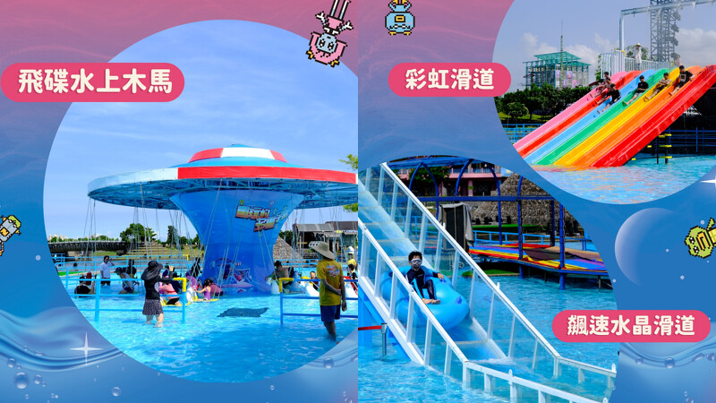 「太空中繼站」可昇降的飛碟座艙、首創飆速水晶滑道,以及寬7公尺刺激的彩虹水滑道