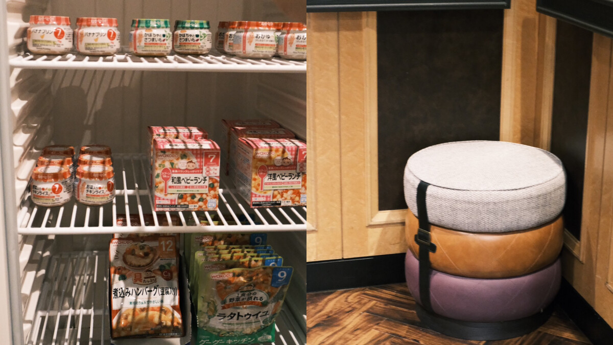 無論是你辛苦育兒的爸媽,還是純粹像小編一樣體力不好,都可以在Kiroro Grand意外發現超貼心的地方,像是餐廳旁的小房間有一整櫃冰箱的嬰兒副食品可以取用,或是電梯裡讓旅人可以坐下來歇息的小椅子,還有如果是台灣人入住,房號不會出現「921」,西方人則是不會拿到代表惡魔的數字「666」和「13」,小小的巧思背後是Kiroro Grand全體員工的心意。