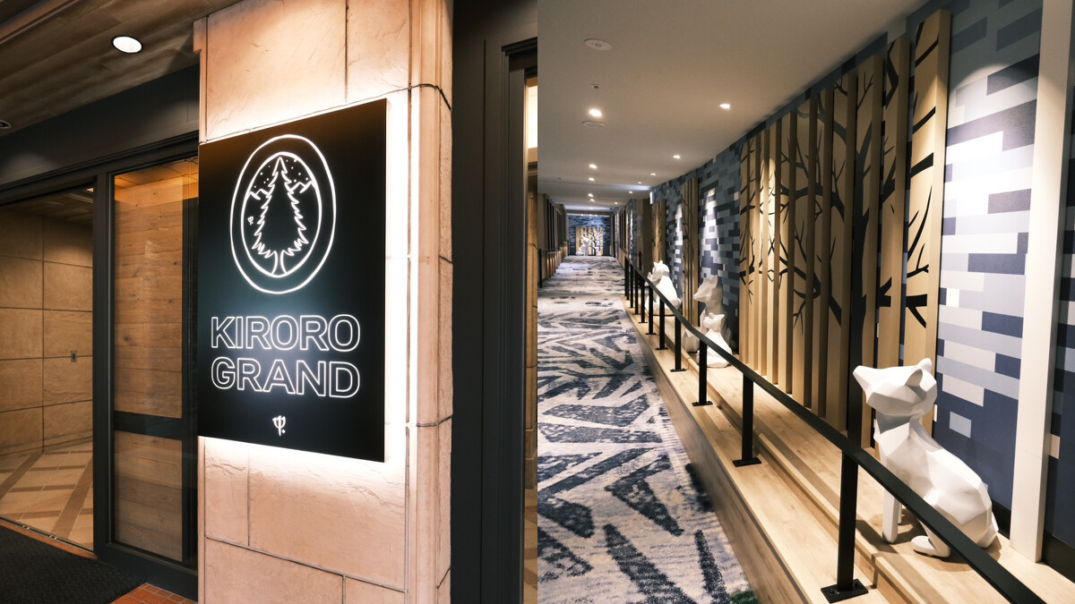 Kiroro Grand以北海道森林以及阿伊努原住民元素為靈感,一走進度假村大廳就有種「哇!好像走進童話世界裡」的感受,通向餐廳的走廊以藍色為主要色,還有小動物的裝置藝術,帶有一絲法式鄉村風格和浪漫感。
