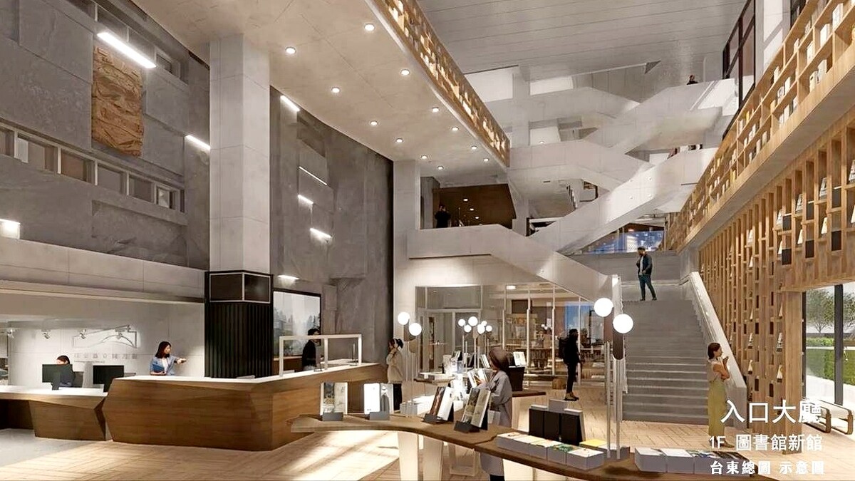 斥資3.2億元,臺東縣立圖書總館以「臺東之谷」為概念主軸、融合「知識向上飛騰」意涵,在建築立面以連續斜面的多層次造型,傳遞出綿延山嵐意象,木格柵則有簷、深遮陽與設計,呼應著台東熱帶氣候。全新總館將與舊館連結,內部空間更能連結起「花東縱谷」相當有特色。